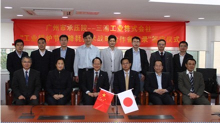 In the morning of Mar., 7th, 2010, Miura Company and Guangzhou Institute of Special Pressure Equipment Inspection & Research held a signing ceremony for “strategic cooperation memorandum on energy saving and consumption reducing technology for industrial boilers” in Guangzhou. The signing ceremony of the cooperation memorandum built a good foundation for the cooperation framework agreement on energy conservation signed between the two sides and also deepened the overall cooperation on the field of energy conservation for industrial boilers. Miura Company will enhance the cooperation with Guangzhou Institute of Special Pressure Equipment Inspection & Research on the aspects of training provided to the professional technicians, research and development of energy conservation technology for boilers, monitoring the temperature of the wall of the boiler tube, detection of the boiler water as well as automatic monitoring technology so as to provide services to boilers at aspects of the safety and energy conservation in Guangzhou in a better way.